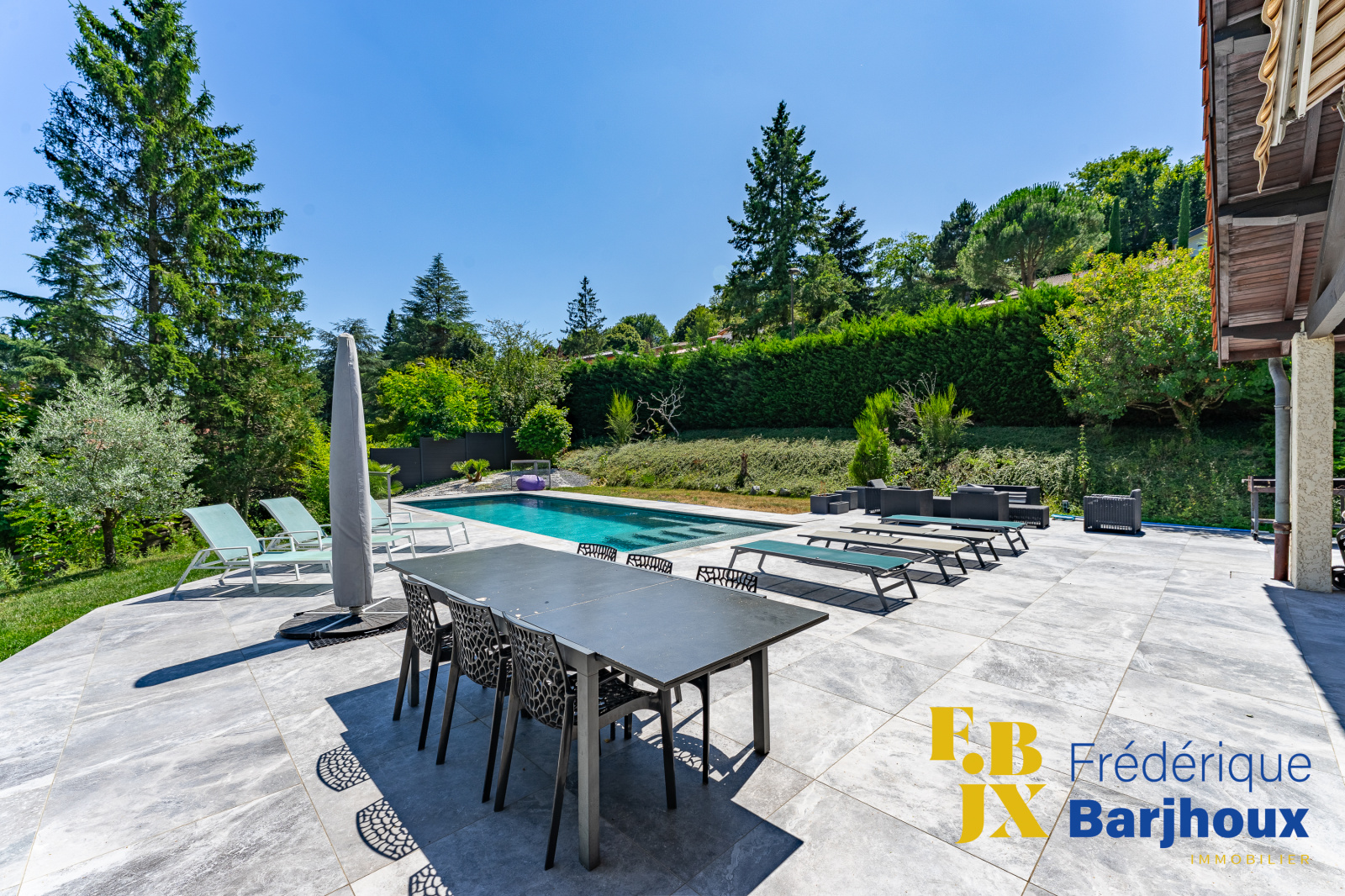 Charbonnières les Bains, au calme, dans un secteur résidentiel prisé et verdoyant à quelques minutes du centre du village, de la gare, bus, école et de ses commerces, Frédérique BARJHOUX agence FBJX vous présente en exclusivité cette belle maison familiale d'une surface habitable de 216 m², à la rénovation totale, actuelle et raffinée alliant élégance et confort, nichée dans un écrin de verdure de plus de 2000 m² avec piscine.