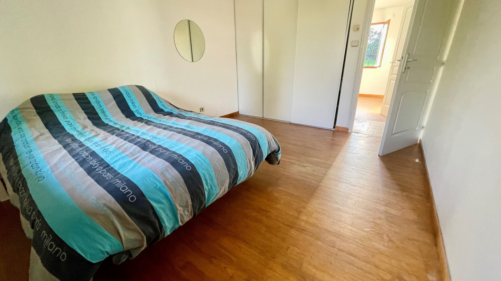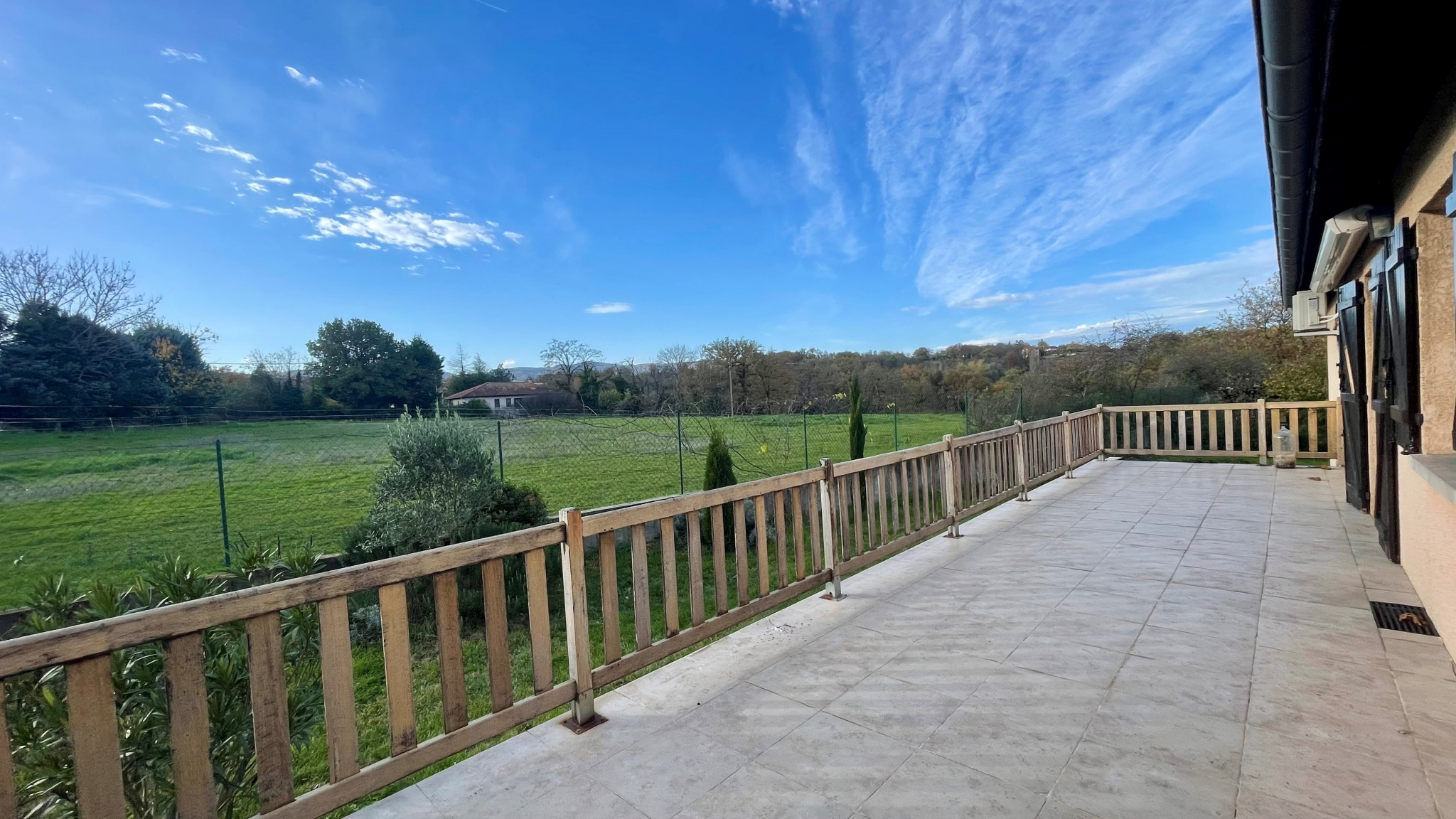 Séjour climatisé donnant sur une terrasse de plus de 34 m² équipée d'un store banne automatisé, cuisine semi-ouverte avec sa jolie verrière, trois chambres (parquet/placard), salle de bains avec baignoire et douche, wc indépendant.