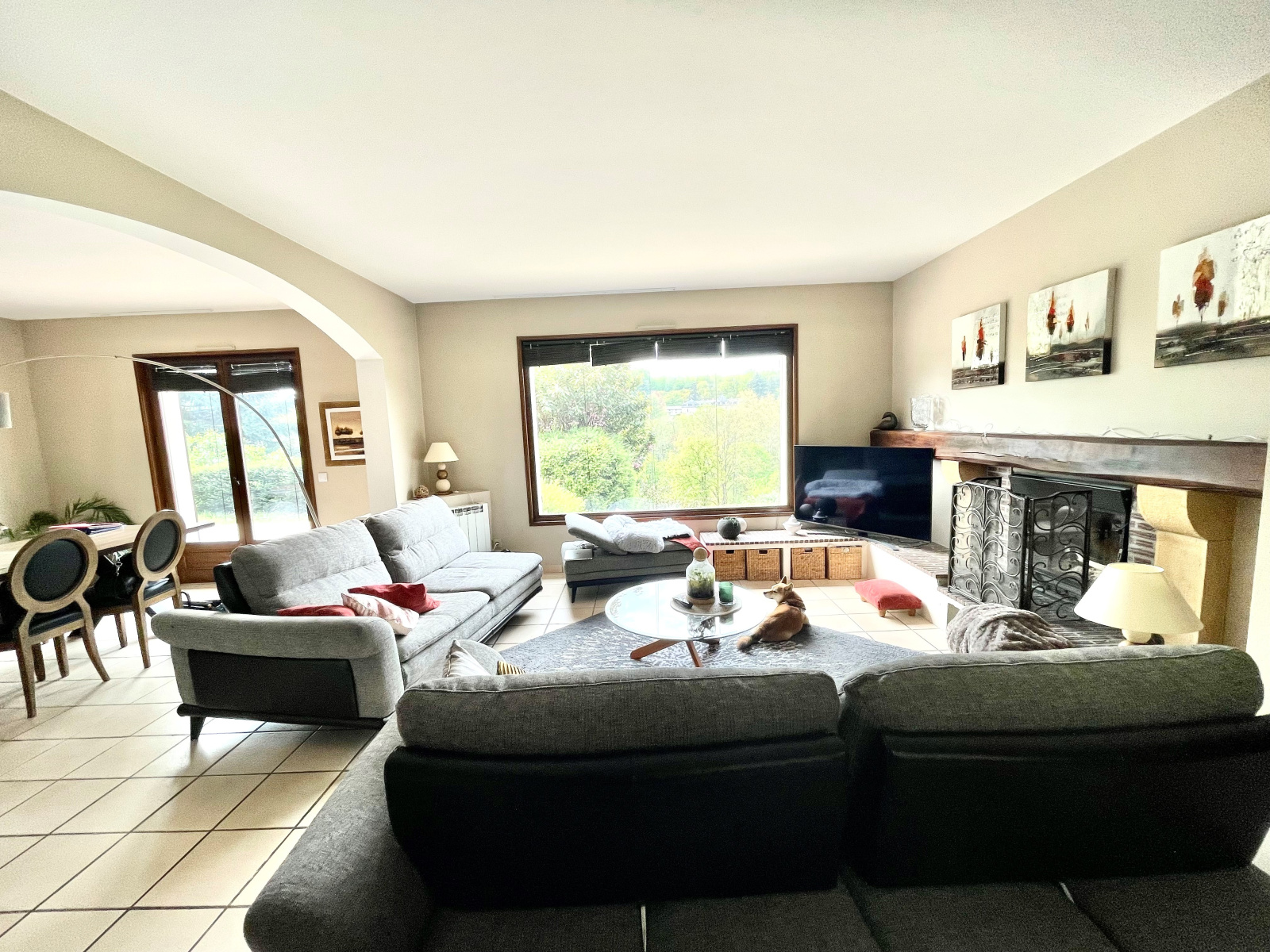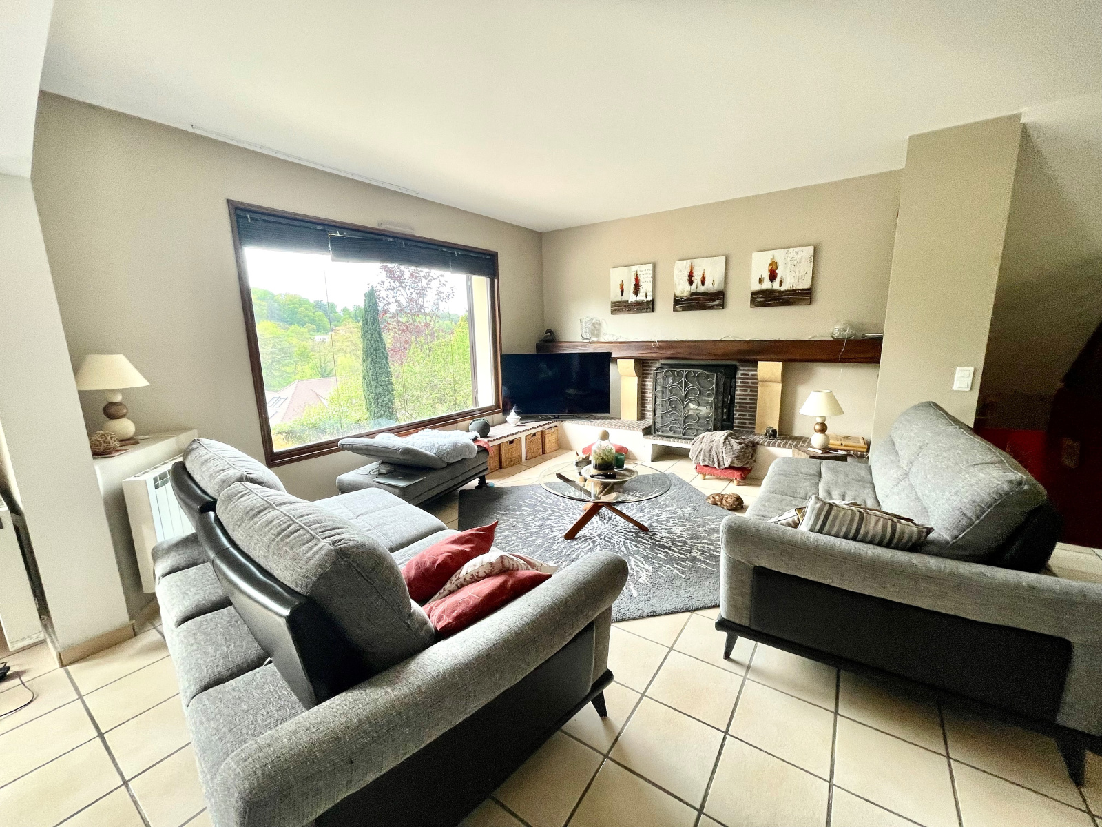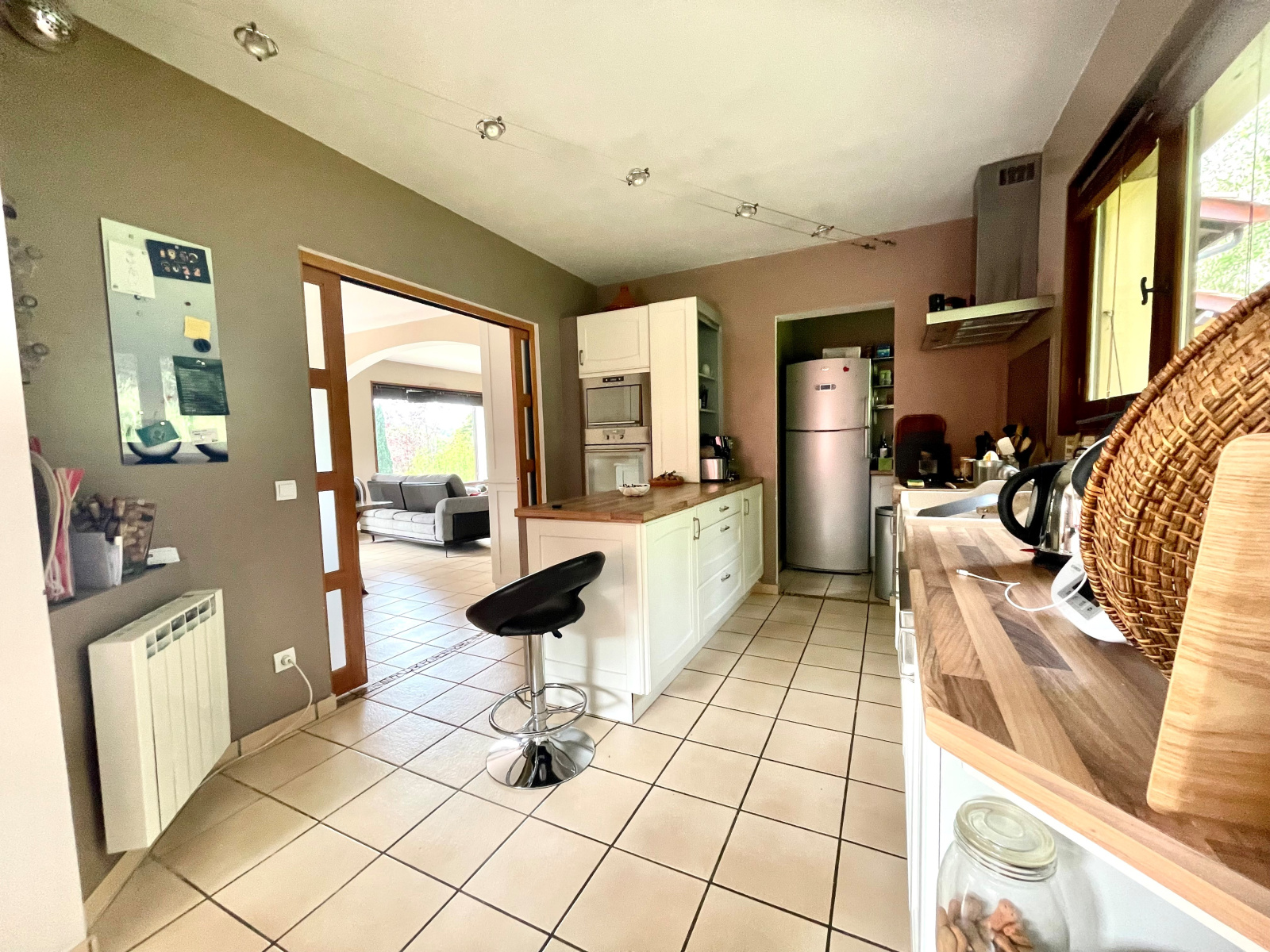 Grand séjour avec cheminée bénéficiant grâce à une imposte vitrée tel un tableau d'une vue dominante sur un vallon verdoyant et son château, cuisine dinatoire équipée semi-ouverte donnant sur une grande terrasse abritée exposée sud, 5 chambres dont une suite parentale avec salle de douche ouvrant sur une terrasse tropézienne, bureau, dressing, une salle de bains, 2 toilettes. Nombreux placards aménagés.