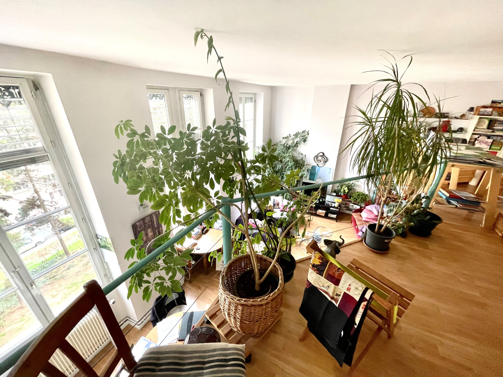 Entrée avec rangements, pièce de vie très lumineuse avec ses 3 grandes fenêtres et sa belle hauteur sous plafond avec vue, cuisine équipée ave comptoir, chambre de 11 m² avec placard/dressing, donnant sur un petit jardin plein de charme, salle d'eau et wc séparé. A l'étage, une grande mezzanine de 37 m² avec bureau/chambre d'amis pièce très clair avec ses deux fenêtres donnant sur le jardin. Remise/cave sur le palier. Possibilité d'acquérir un garage en plus du pix (40.000 €).