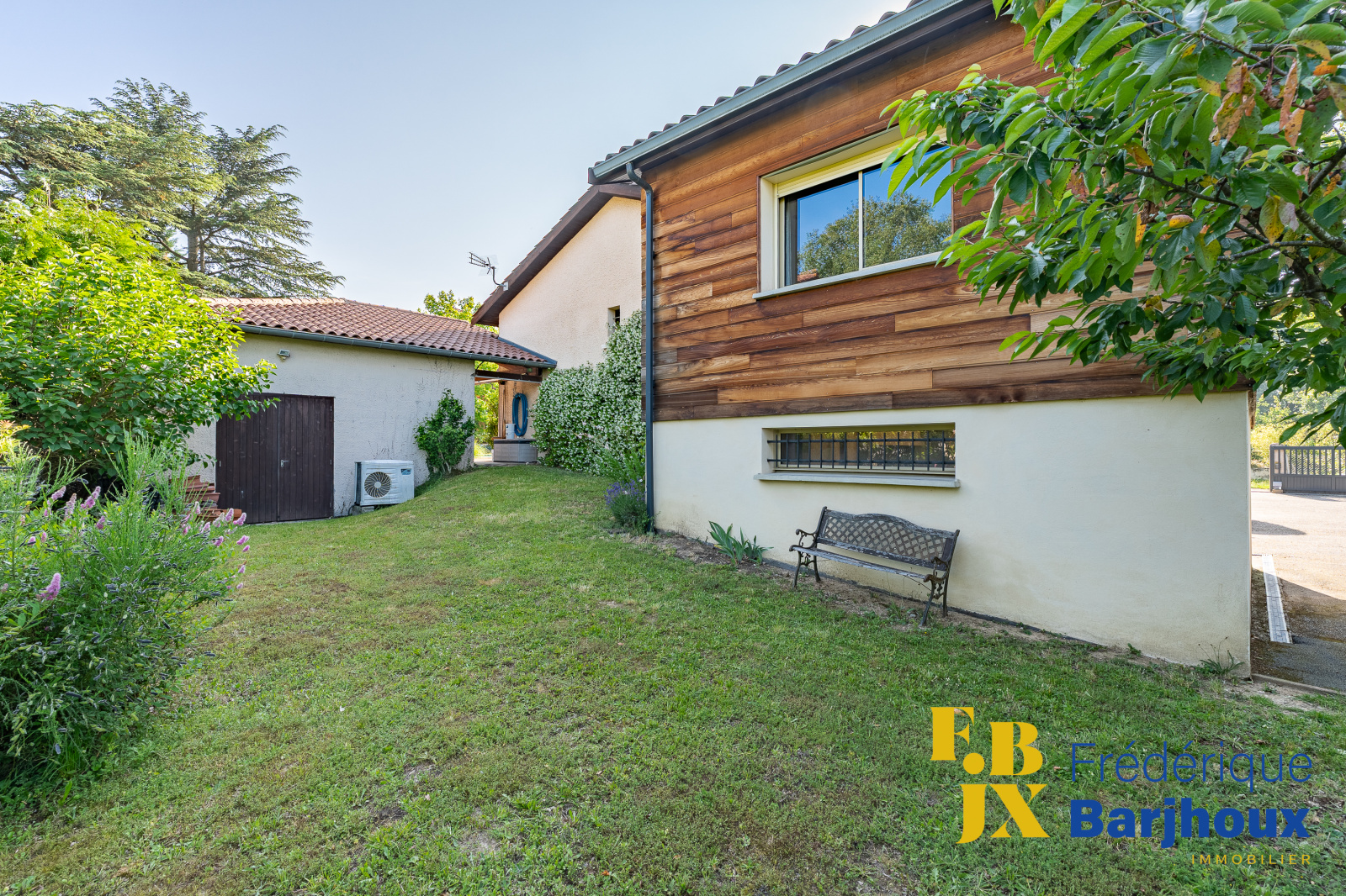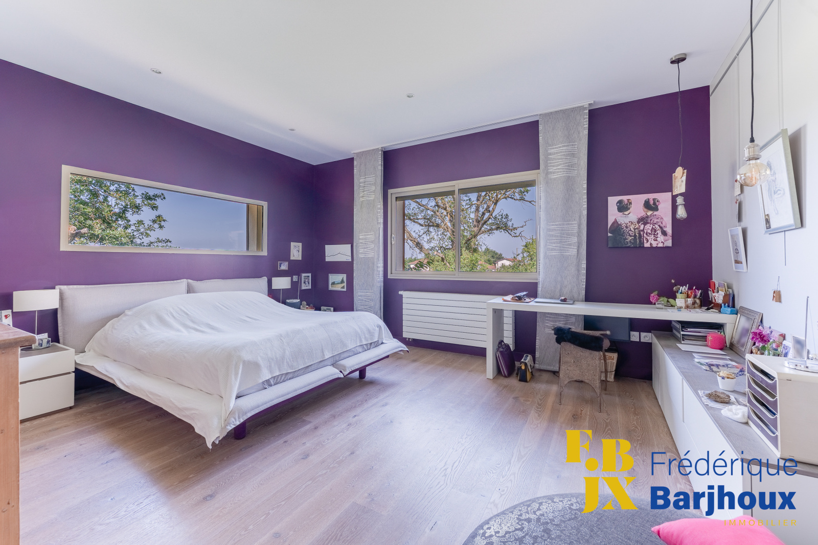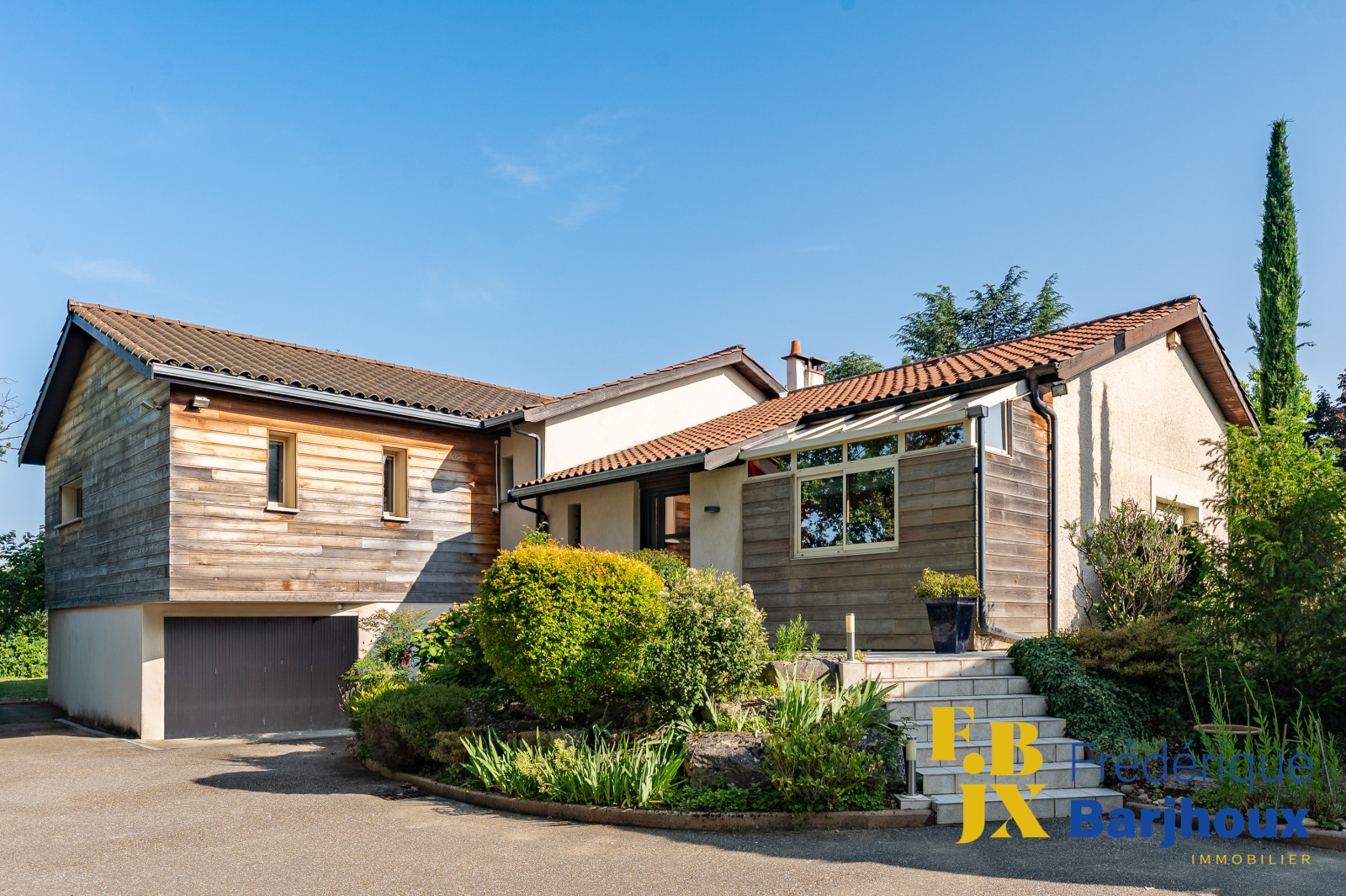 à propos de cebienExclusivité Frédérique BARJHOUX-agence FBJX. Découvrez sur la charmante commune de Saint Genis les Ollières, idéalement située, au calme à 2 pas du centre du village, cette belle maison individuelle, non mitoyenne, essentiellement de plain-pied, d'une surface habitable de 160 m² + grand sous-sol de 95 m² sur une parcelle de terrain paysagée, plat et clos de 1325 m² avec piscine. Dès l'entrée, vous serez séduit par un spacieux et lumineux séjour de plus de 48 m² avec cheminée et bibliothèque aménagée sur mesure, bénéficiant d'une superbe vue dégagée en perspective sur le jardin arboré et fleuri, cuisine équipée Poggenpohl avec verrière le tout ouvrant sur une grande terrasse couverte d'un auvent. La partie nuit comprend quatre chambres (parquet/placard), dont une très belle suite parentale avec baignoire, douche et dressing + rangements, autre salle de bains, 2 wc séparés. Un grand sous-sol composé d'une buanderie, d'un atelier/espace rangements, attenant un double garage de 42 m² (porte automatisée), trois places de stationnement supplémentaires en extérieur complètent la maison. Un chalet indépendant de 17 m² composé d'une chambre, d'une salle d'eau et un WC, idéal pour accueillir famille et amis ou exercice activité indépendante/télé-travail.. Local piscine/remise à outils, réserve bois pour la cheminée. Le jardin arboré et fleuri à l'esprit "provençal" est plat, sans vis-à-vis, entièrement clos, piscine chauffée10x5 (nage à contre-courant). Cette maison bénéficie de belles prestations : menuiseries aluminium, plancher chauffant, adoucisseur d'eau, portail automatisé, visiophone, alarme... À pied, accédez facilement à pied à l'école maternelle et primaire de Saint Genis les Ollières crèches, commerces, brasserie, marchés de producteurs (jeudi, dimanche matin et vendredi après-midi), médiathèque..... Le bus 72 offre un accès direct sur Tassin, métro Gorge de Loup et Part-Dieu. Institutions scolaires St Joseph à Tassin, lycée Blaise Pascal à Charbonnières par bus et JD. Les honoraires d'agence sont à la charge vendeur. Contactez Frédérique BARJHOUX-FBJX, agence indépendante sur Saint-Genis-les-Ollières.
