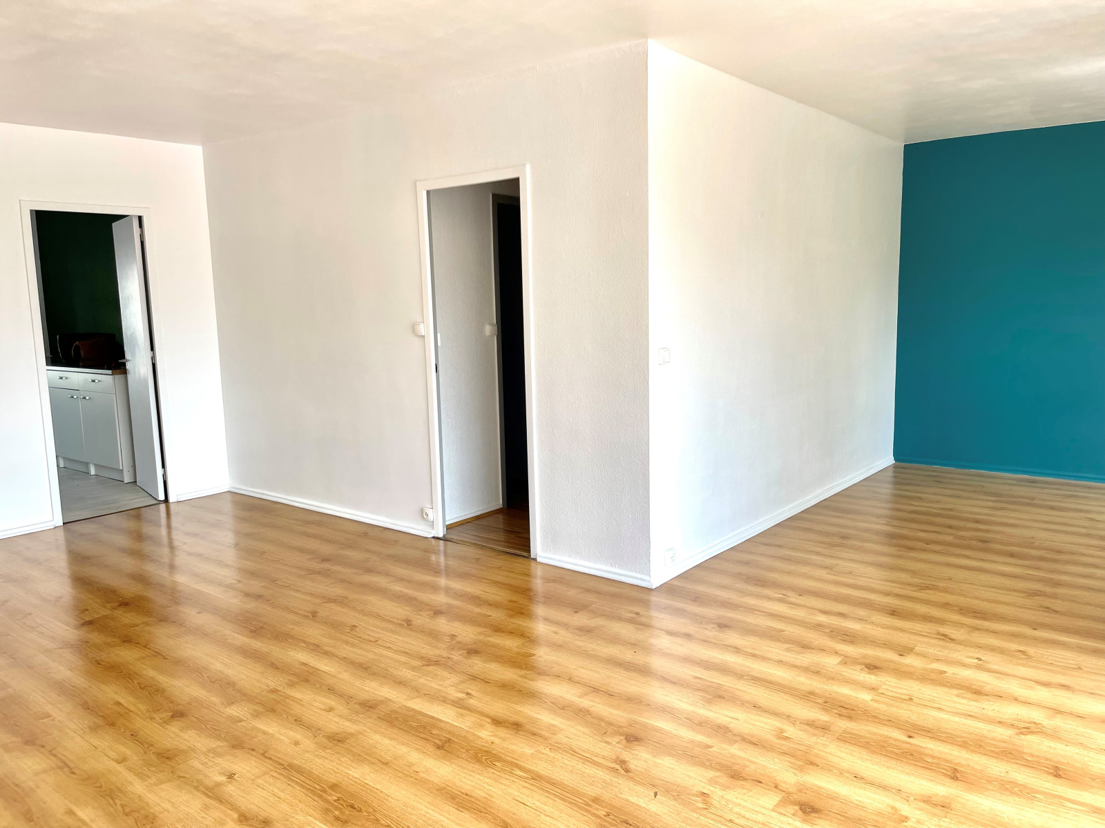 Entrée, double séjour de 35m² avec parque donnant sur le balcon couvert exposé sud-ouest, cuisine séparée de 13m², grand cellier/buanderie. Partie nuit avec 3 chambres (3x11m²), un bureau, salle de bains, cabinet de toilette avec lavabo, wc séparé.