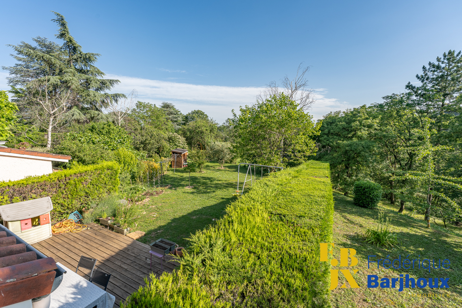 Joli jardin plat, fleuri et arboré avec vue dégagé sur la nature à moins de 10 minutes de Lyon Centre !