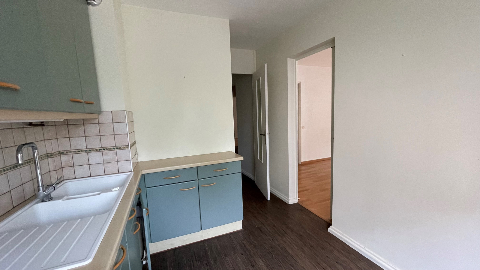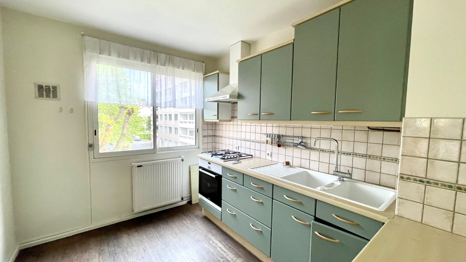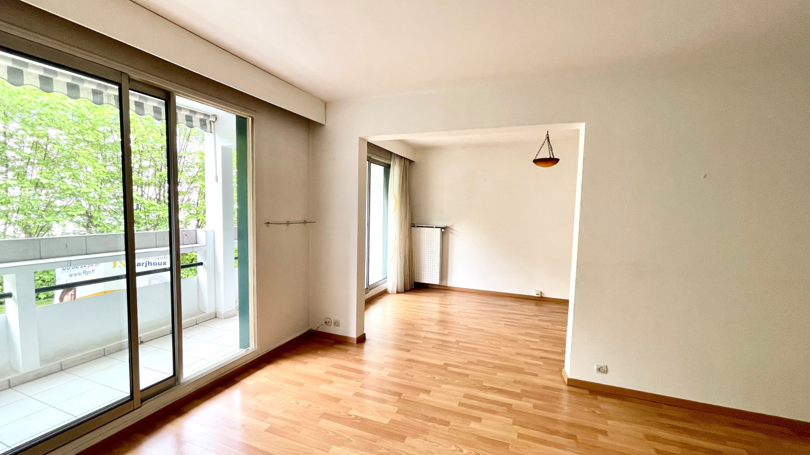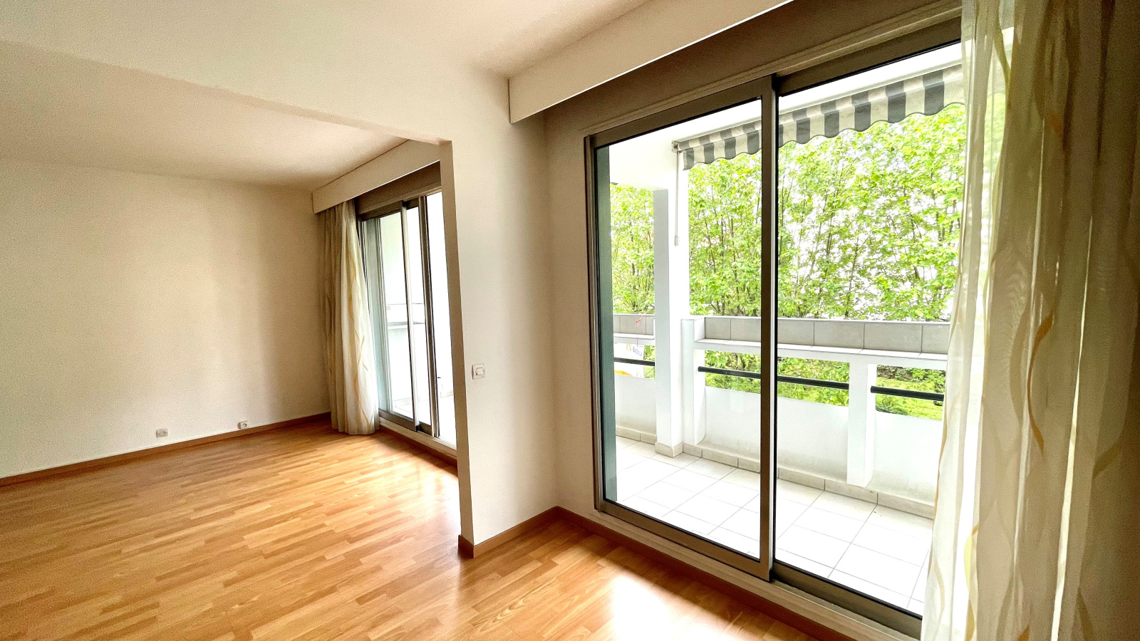 Entrée avec rangements/dressing, double séjour 30m² donnant sur un balcon large exposé est, cuisine séparée, une chambre de 14m², une autre chambre de 16m² avec parquet et placard aménagés en rangements, une salle d'eau, un wc séparé.